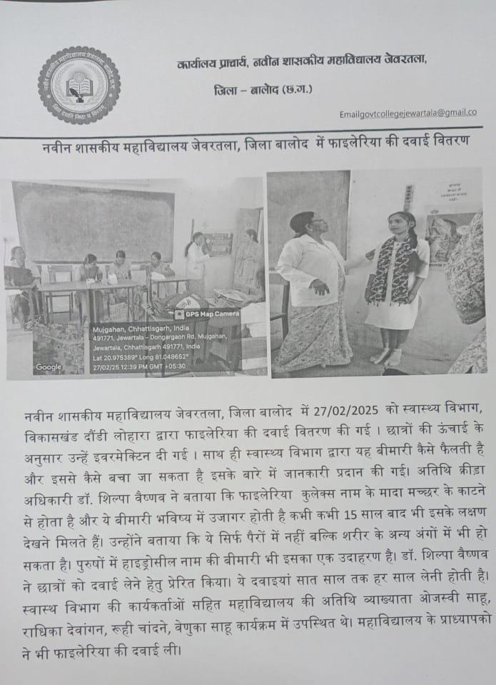 नवीन शासकीय महाविद्यालय जेवरतला जिला बालोद पोषण विद्यालय अभियान