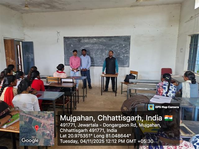 आज दिनाँक 04/11/2025 दिन मंगलवार को नवीन शासकीय महाविद्यालय जेवरतला,जिला-बालोद छ.ग.में छात्र-छात्राओं के लिए प्राचार्य डॉ. यासर कुरैशी सर के मार्गदर्शन एवं श्री नरहरि सिंह ठाकुर सर के सहयोग से कैरियरगाइडेंस कार्यक्रम कराया गया। इस कार्यक्रम में देवरी बंगला,जिला-बालोद,छ.ग. से आए श्रीमुकेश सिन्हा के द्वारा कैरियर से संबंधित जानकारी देकर छात्र-छात्राओं कोलाभान्वित एवं प्रेरित किया गया। छात्र-छात्राएँ बड़े ही शालीनता से सर के बातों कोसुने एवं उत्सुकता दिखाई। कार्यक्रम के अंत में राणा सर एवं कुजूर सर के द्वाराउक्त वक्तव्य पर छात्र-छात्राओं को समीक्षात्मक दृष्टि प्रदान किया गया।