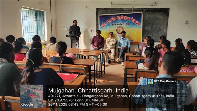 आज नवीन शासकीय महाविद्यालय जेवरतला में महाविद्यालय के प्राचार्य डॉ. यासर कुरैशी सर के मार्गदर्शन एवं श्री नरहरि सिंह ठाकुर सर के सार्थकता में संविधान दिवस मनाया गया। कार्यक्रम का संचालन हिंदी विभाग से श्री सुमित कुजूर के द्वारा किया गया। तत्पश्चात राजनीति विभाग से श्री मृगेंद्र राणा सर संविधान की महत्ता बताते हुए कार्यक्रम में उपस्थित महाविद्यालय के समस्त प्राध्यापकों/अधिकारियों एवं छात्र - छात्राओं का ससम्मान आभार व्यक्त किया गया।
