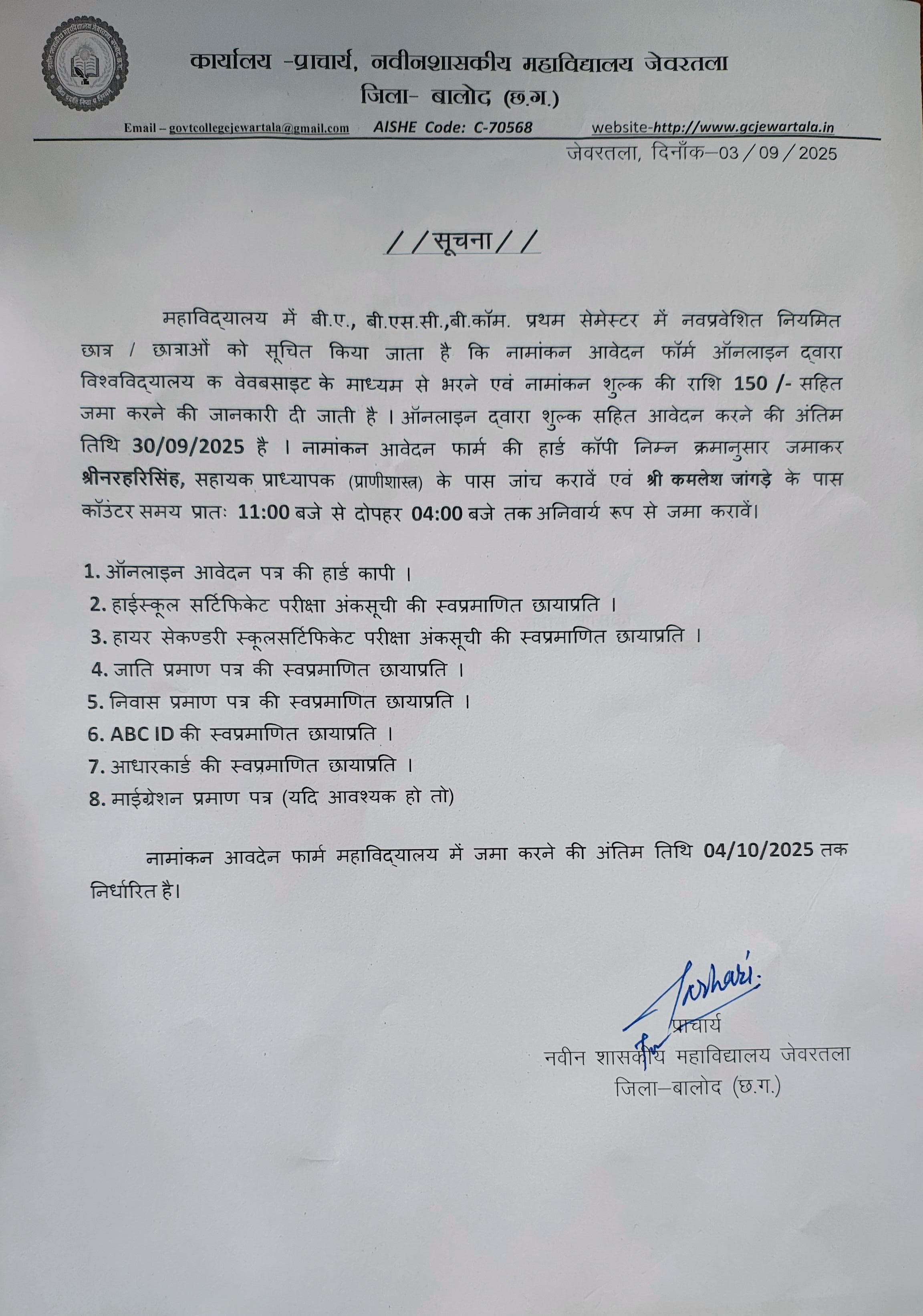 शैक्षणिक सत्र 2024-25 में स्नातक स्तर के पाठ्यक्रम में प्रवेश लेने वाले विद्यार्थी राष्ट्रीय शिक्षा निति 2020 के पाट्यक्रम के अंतर्गत प्रवेश लेगे