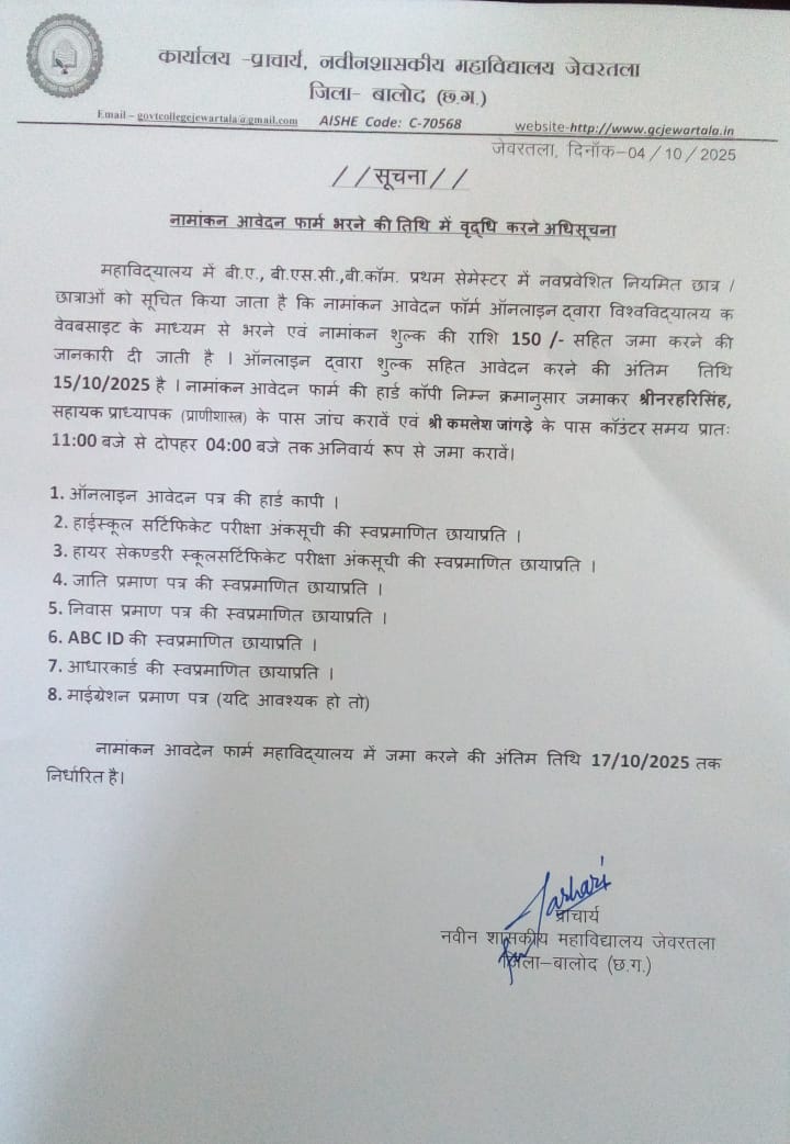 a successful multidisciplinary college established in the year 2023, this college is continuously moving ahead on the path of success and is counted as one of the newly fast growing colleges of Chhattisgarh. It's academic excellency is reflected in its learning, teaching process in Arts ,commerce and science . Honorable