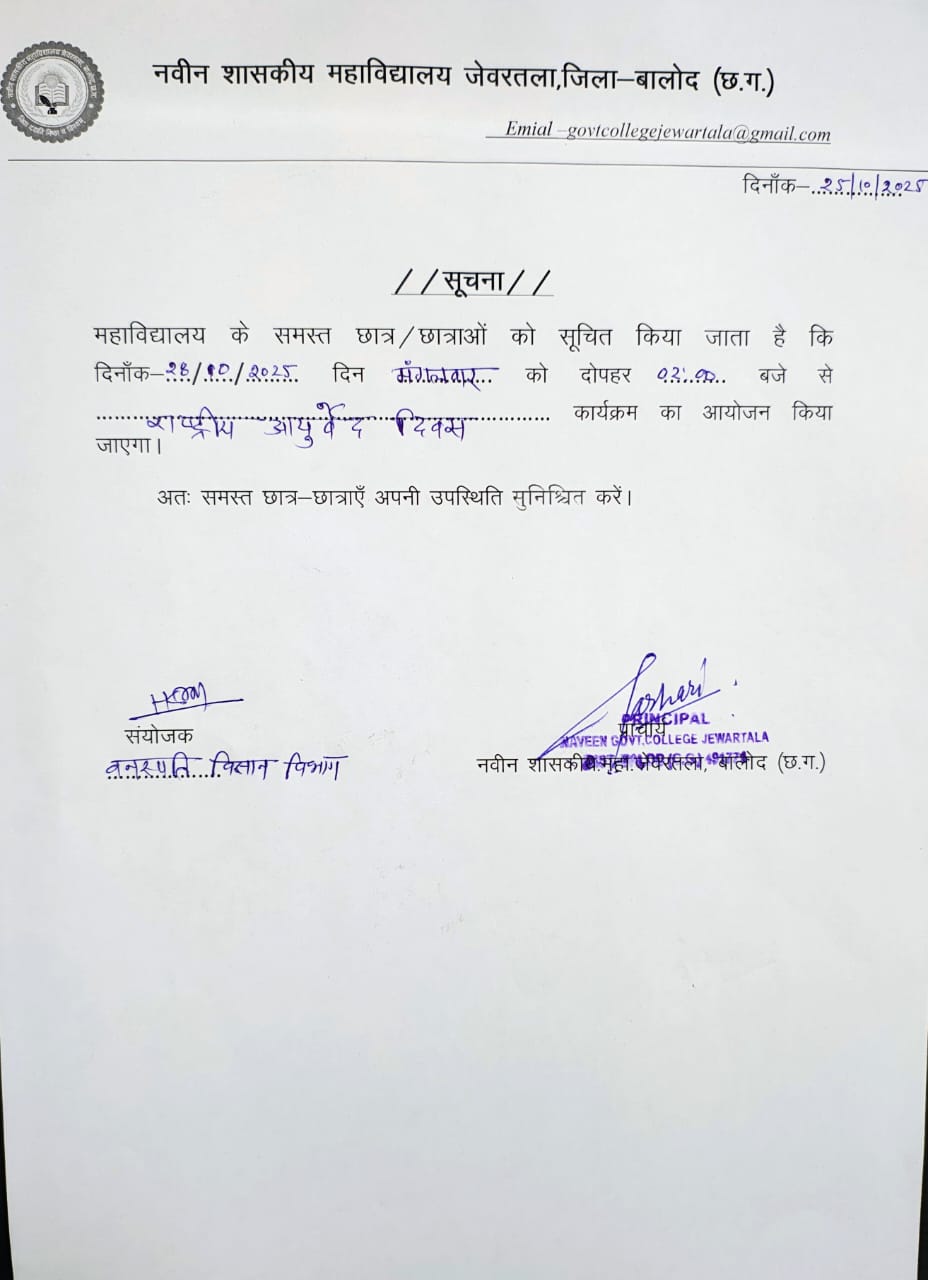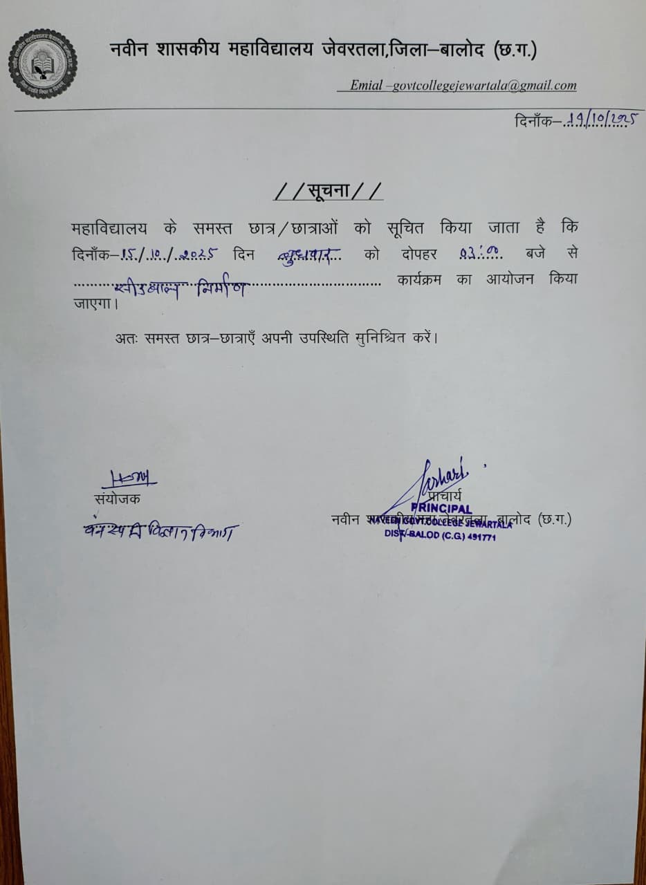 नवीन शासकीय महाविद्यालय जेवरतला जिला बालोद पोषण विद्यालय अभियान
